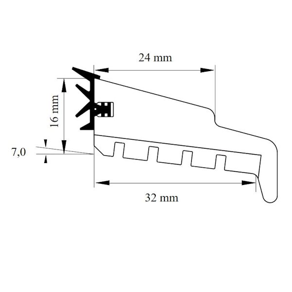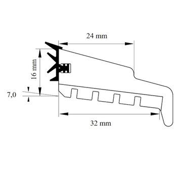 Primo glaslist 32 x 16 mm till botten - längd 2500 mm. Vit plast med EPDM gummi.